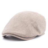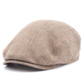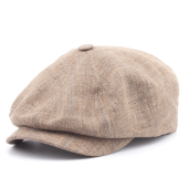 8-Panel Linen Herringbone Flat Cap (beige/navy)